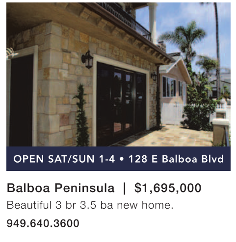 Balboa Peninsula | $1,695,000 Beautiful 3 br 3.5 ba new home. 949.640.3600