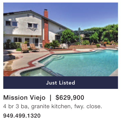 Mission Viejo | $629,900 4 br 3 ba, granite kitchen, fwy. close. 949.499.1320