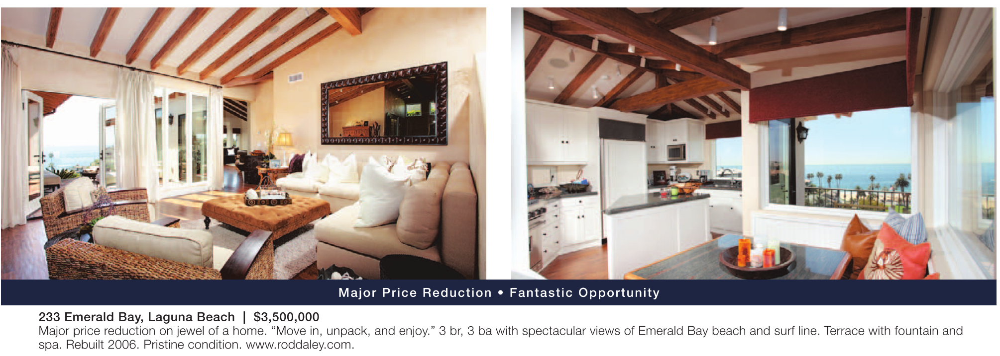 233 Emerald Bay, Laguna Beach | $3,500,000 Major price reduction on jewel of a home. “Move in, unpack, and enjoy.” 3 br, 3 ba with spectacular views of Emerald Bay beach and surf line. Terrace with fountain and spa. Rebuilt 2006. Pristine condition. www.roddaley.com.