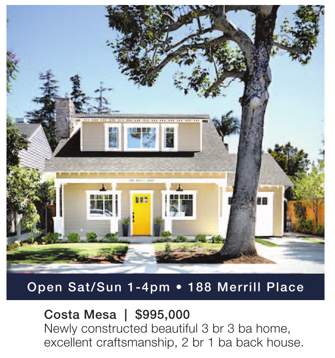 Costa Mesa | $995,000 Newly constructed beautiful 3 br 3 ba home, excellent craftsmanship, 2 br 1 ba back house.