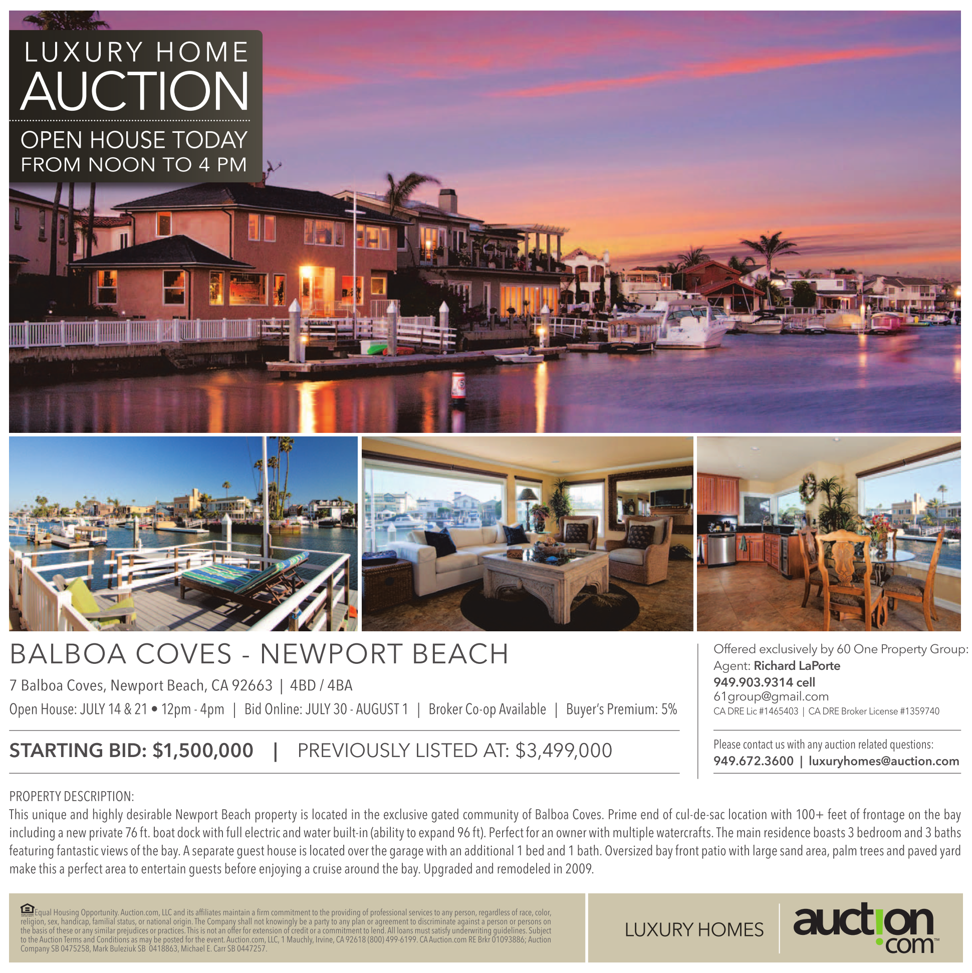 7 Balboa Coves, Newport Beach, CA 92663 | 4BD / 4BA Open House: JULY 14 & 21 • 12pm - 4pm | Bid Online: JULY 30 - AUGUST 1 | Broker Co-op Available | Buyer’s Premium: 5%