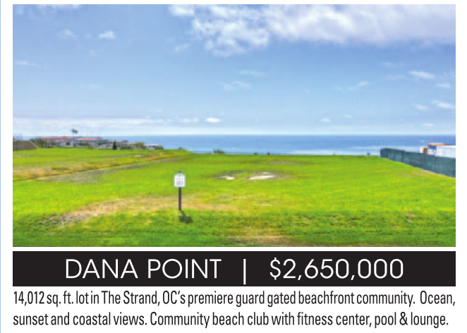 14,012 sq. ft. lot in The Strand, OC’s premiere guard gated beachfront community. Ocean, sunset and coastal views. Community beach club with fitness center, pool & lounge.