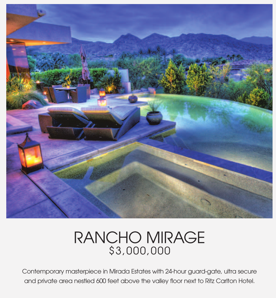 Contemporary masterpiece in Mirada Estates with 24-hour guard-gate, ultra secure and private area nestled 600 feet above the valley floor next to Ritz Carlton Hotel.