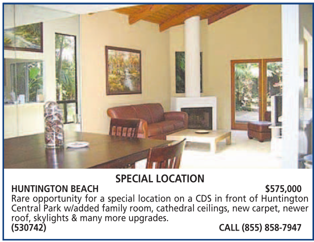 SPECIAL LOCATION HUNTINGTON BEACH $575,000 Rare opportunity for a special location on a CDS in front of Huntington Central Park w/added family room, cathedral ceilings, new carpet, newer roof, skylights & many more upgrades. (530742) CALL (855) 858-7947