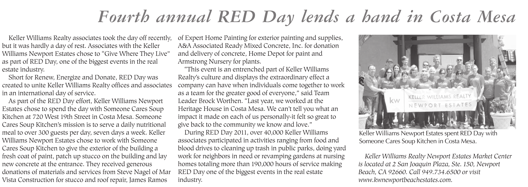 Keller Williams Newport Estates spent RED Day with Someone Cares Soup Kitchen in Costa Mesa.