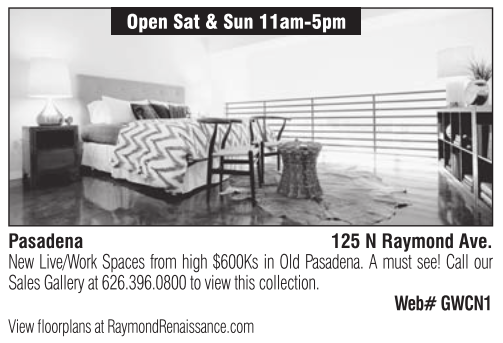 New Live/Work Spaces from high $600Ks in Old Pasadena. A must see! Call our Sales Gallery at 626.396.0800 to view this collection. Web# GWCN1 View floorplans at RaymondRenaissance.com
