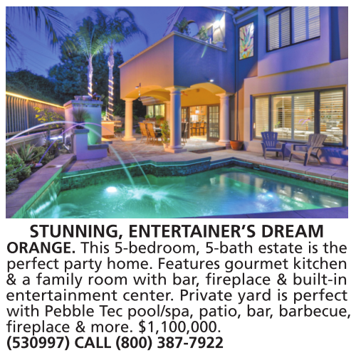 STUNNING, ENTERTAINER’S DREAM ORANGE. This 5-bedroom, 5-bath estate is the perfect party home. Features gourmet kitchen & a family room with bar, fireplace & built-in