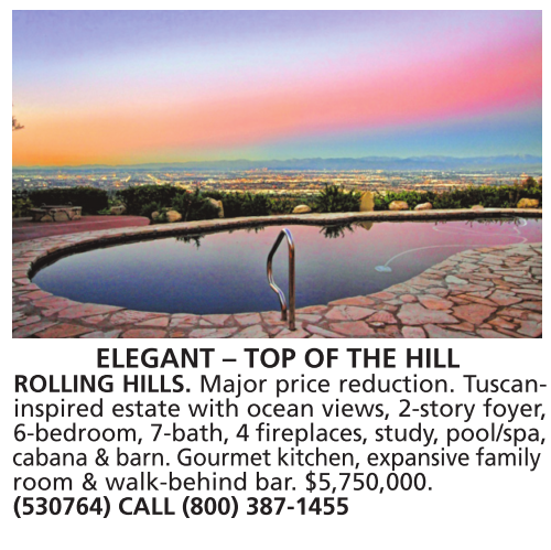 ELEGANT – TOP OF THE HILL ROLLING HILLS. Major price reduction. Tuscaninspired