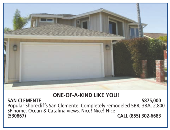 SAN CLEMENTE $875,000 Popular Shorecliffs San Clemente. Completely remodeled 5BR, 3BA, 2,800 SF home. Ocean & Catalina views. Nice! Nice! Nice! (530867) CALL (855) 302-6683