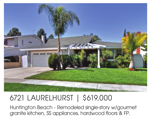 Huntington Beach - Remodeled single-story w/gourmet granite kitchen, SS appliances, hardwood floors & FP.