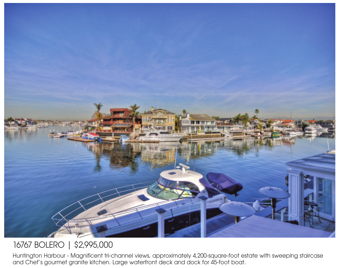 Huntington Harbour - Magnificent tri-channel views, approximately 4,200-square-foot estate with sweeping staircase and Chef’s gourmet granite kitchen. Large waterfront deck and dock for 45-foot boat.