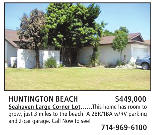 HUNTINGTON BEACH $449,000 Seahaven Large Corner Lot……This home has room to grow, just 3 miles to the beach. A 2BR/1BA w/RV parking and 2-car garage. Call Now to see!