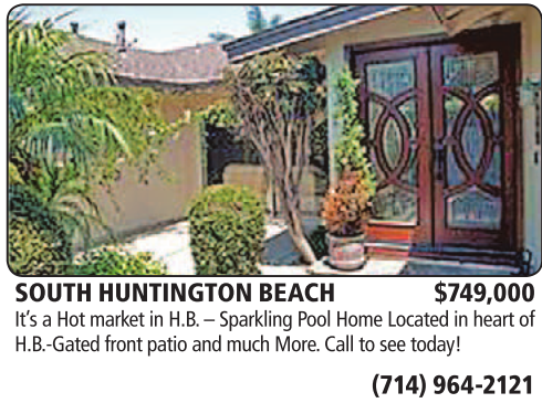 SOUTH HUNTINGTON BEACH $749,000 It’s a Hot market in H.B. – Sparkling Pool Home Located in heart of H.B.-Gated front patio and much More. Call to see today!