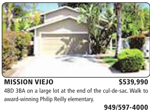 MISSION VIEJO $539,990 4BD 3BA on a large lot at the end of the cul-de-sac. Walk to award-winning Philip Reilly elementary.