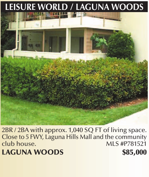 2BR / 2BA with approx. 1,040 SQ FT of living space. Close to 5 FWY, Laguna Hills Mall and the community club house. MLS #P781521 LAGUNA WOODS $85,000