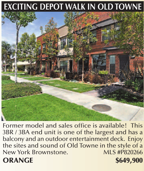 EXCITING DEPOT WALK IN OLD TOWNE Former model and sales office is available! This 3BR / 3BA end unit is one of the largest and has a balcony and an outdoor entertainment deck. Enjoy the sites and sound of Old Towne in the style of a New York Brownstone. MLS #P820266 ORANGE $649,900