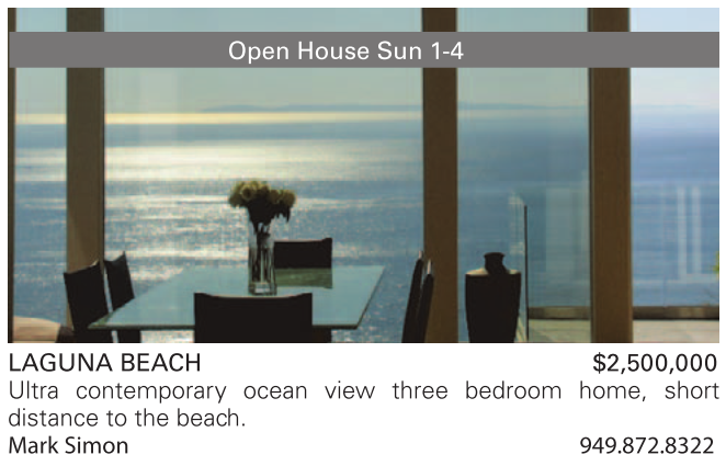 LAGUNA BEACH $2,500,000 Ultra contemporary ocean view three bedroom home, short distance to the beach. Mark Simon 949.872.8322
