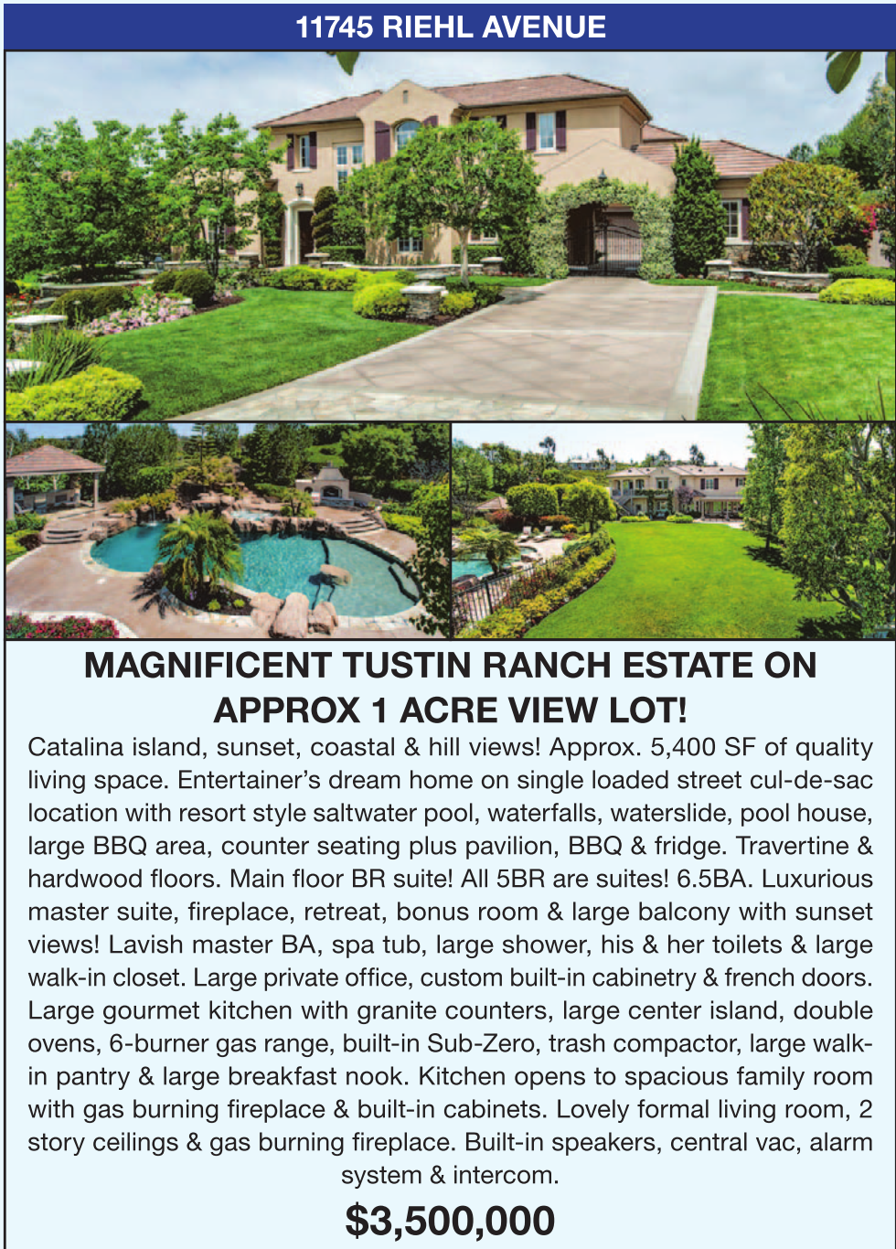 MAGNIFICENT TUSTIN RANCH ESTATE ON APPROX 1 ACRE VIEW LOT!