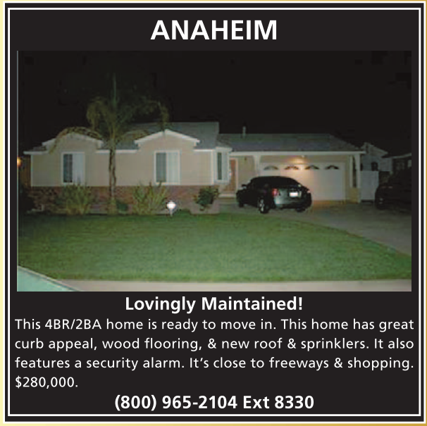 This 4BR/2BA home is ready to move in. This home has great curb appeal, wood flooring, & new roof & sprinklers. It also features a security alarm. It’s close to freeways & shopping. $280,000.
