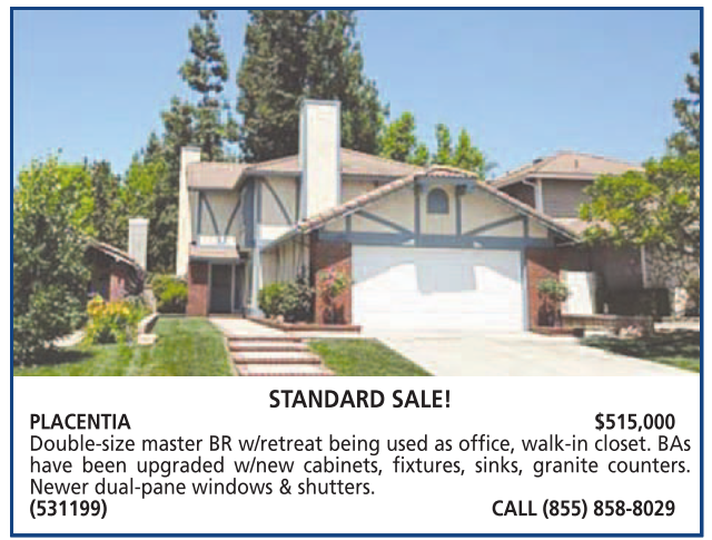 PLACENTIA $515,000 Double-size master BR w/retreat being used as office, walk-in closet. BAs have been upgraded w/new cabinets, fixtures, sinks, granite counters. Newer dual-pane windows & shutters. (531199) CALL (855) 858-8029