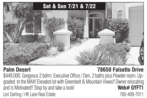 and is Motivated!! Stop by and take a look! Web# GYFT1 Lori Darling / HK Lane Real Estate 760-409-7011