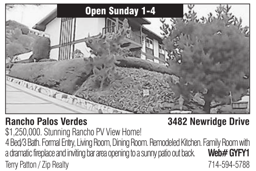 Rancho Palos Verdes 3482 Newridge Drive $1,250,000. Stunning Rancho PV View Home!