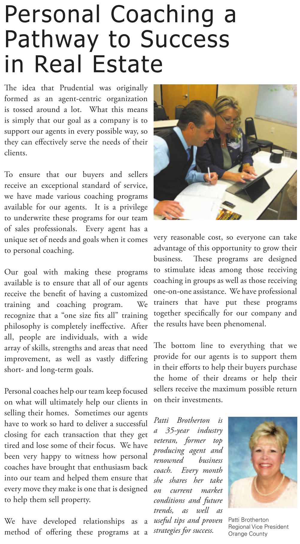 Patti Brotherton is a 35-year industry veteran, former top producing agent and