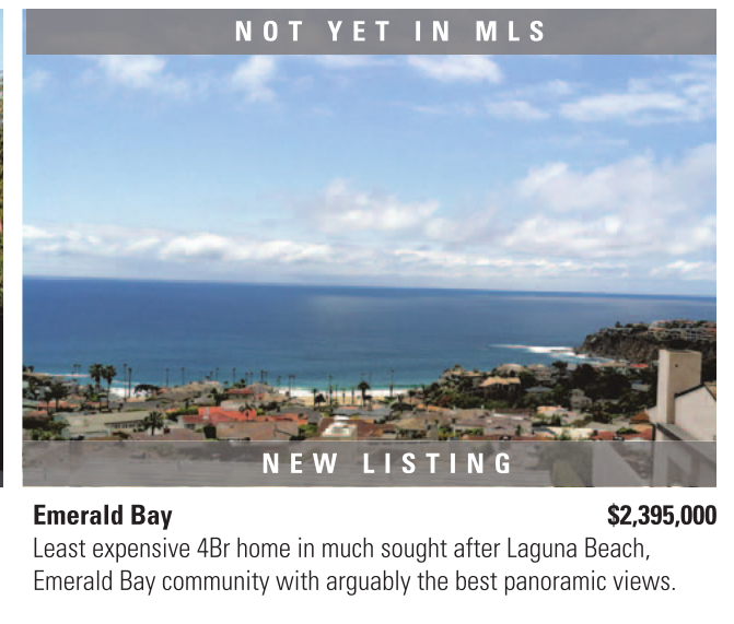 Emerald Bay $2,395,000 Least expensive 4Br home in much sought after Laguna Beach, Emerald Bay community with arguably the best panoramic views.