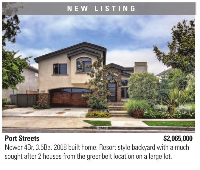 Port Streets $2,065,000 Newer 4Br, 3.5Ba. 2008 built home. Resort style backyard with a much sought after 2 houses from the greenbelt location on a large lot.