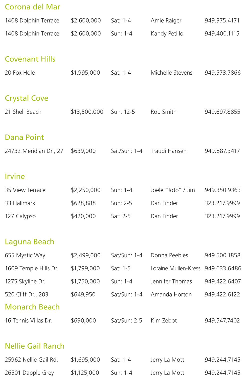 20 Fox Hole $1,995,000 Sat: 1-4 Michelle Stevens 949.573.7866