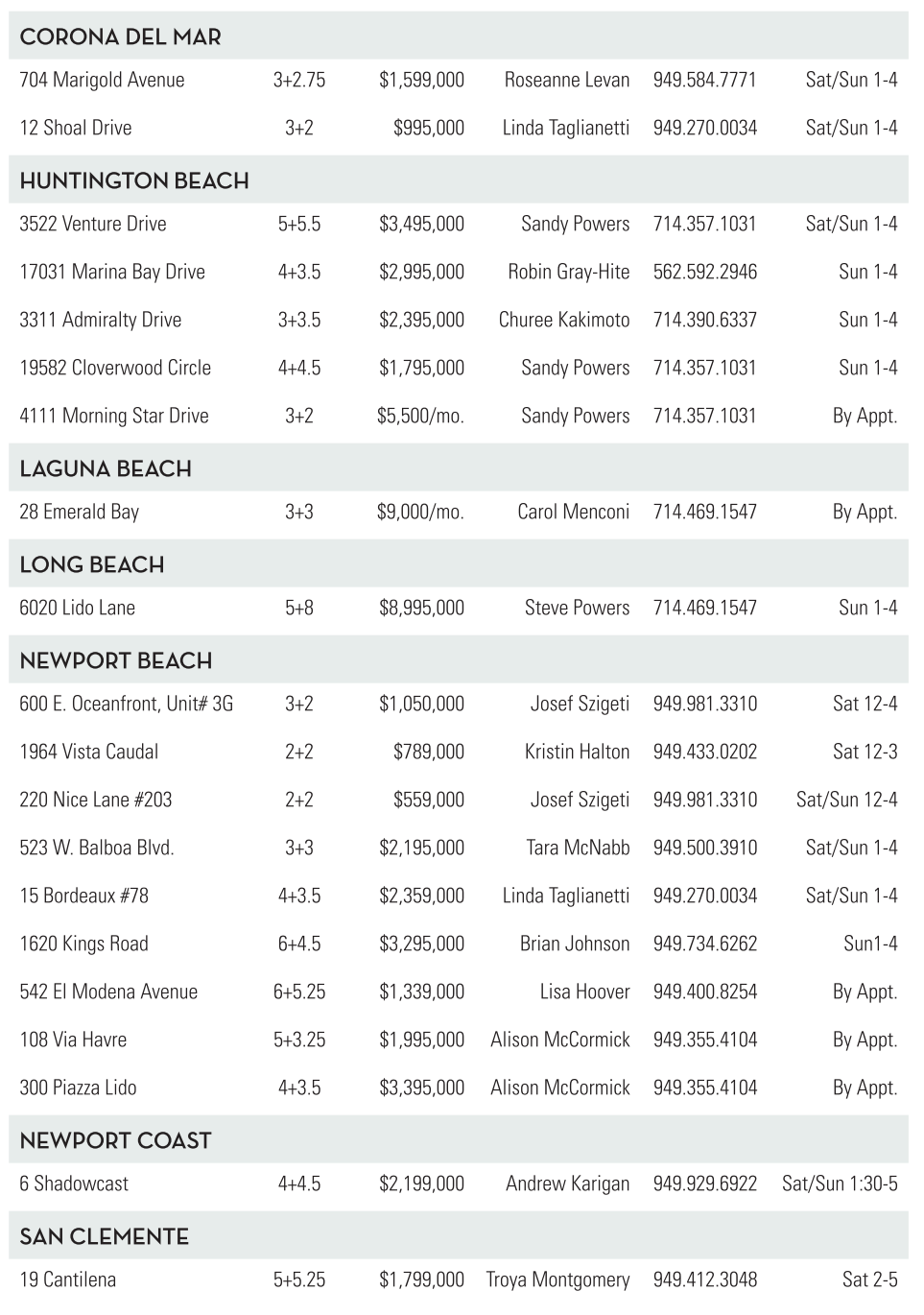 523 W. Balboa Blvd. 3+3 $2,195,000 Tara McNabb 949.500.3910 Sat/Sun 1-4