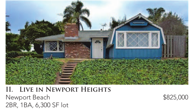 Newport Beach $825,000 2BR, 1BA, 6,300 SF lot