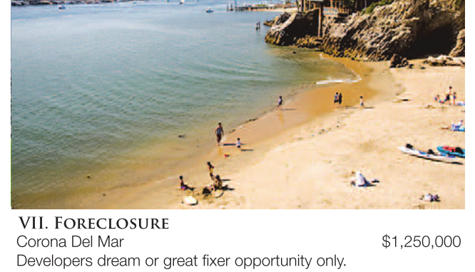 VII. Newport Foreclosure Heights Newport Corona Del Beach Mar $1,250,000 $739,000 Build Developers your dream dream home or great or 2 fi condos. xer opportunity Priced right! only.