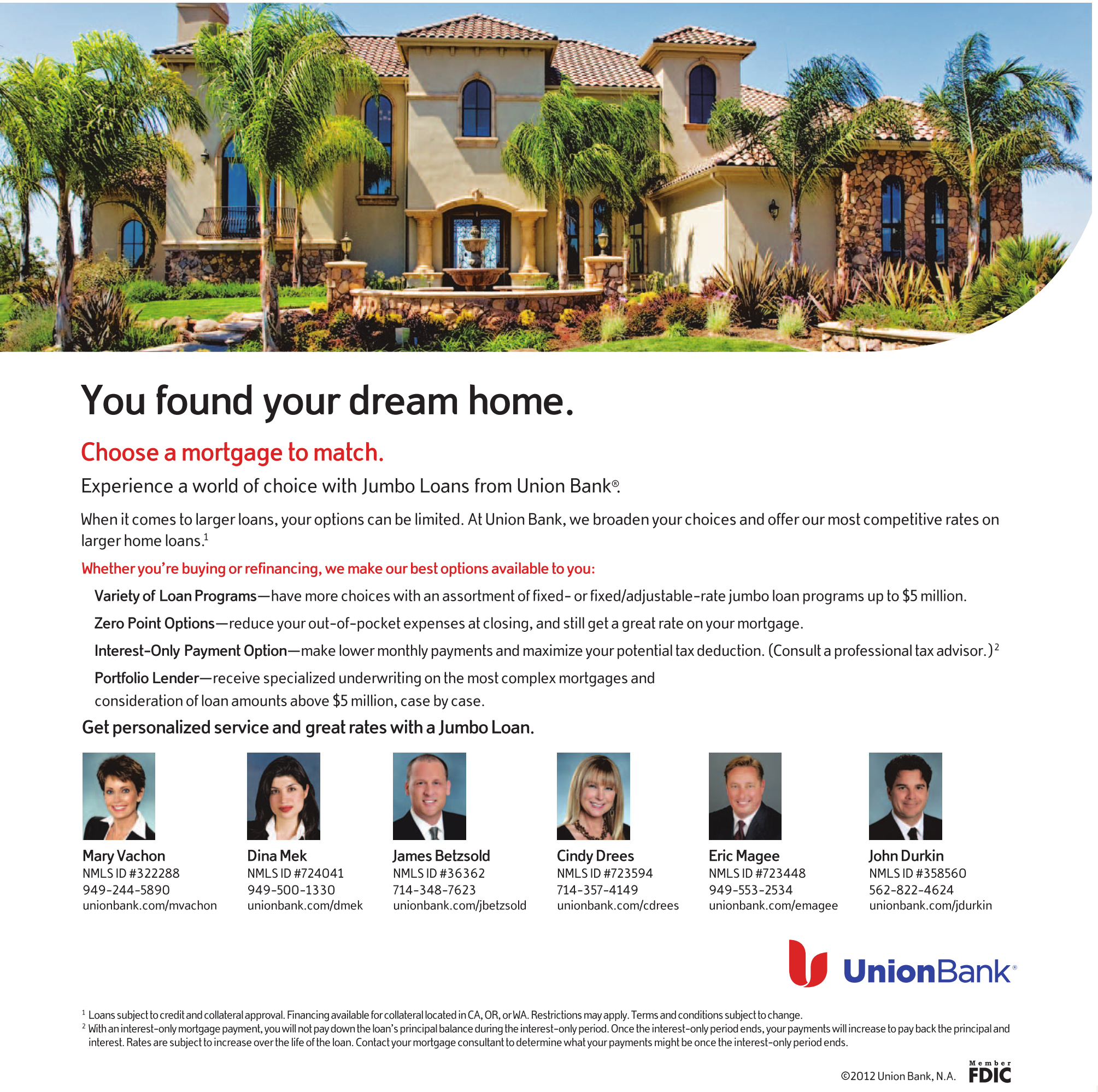 When it comes to larger loans, your options can be limited. At Union Bank, we broaden your choices and offer our most competitive rates on larger home loans. 1