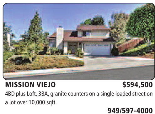 MISSION VIEJO $594,500 4BD plus Loft, 3BA, granite counters on a single loaded street on a lot over 10,000 sqft.