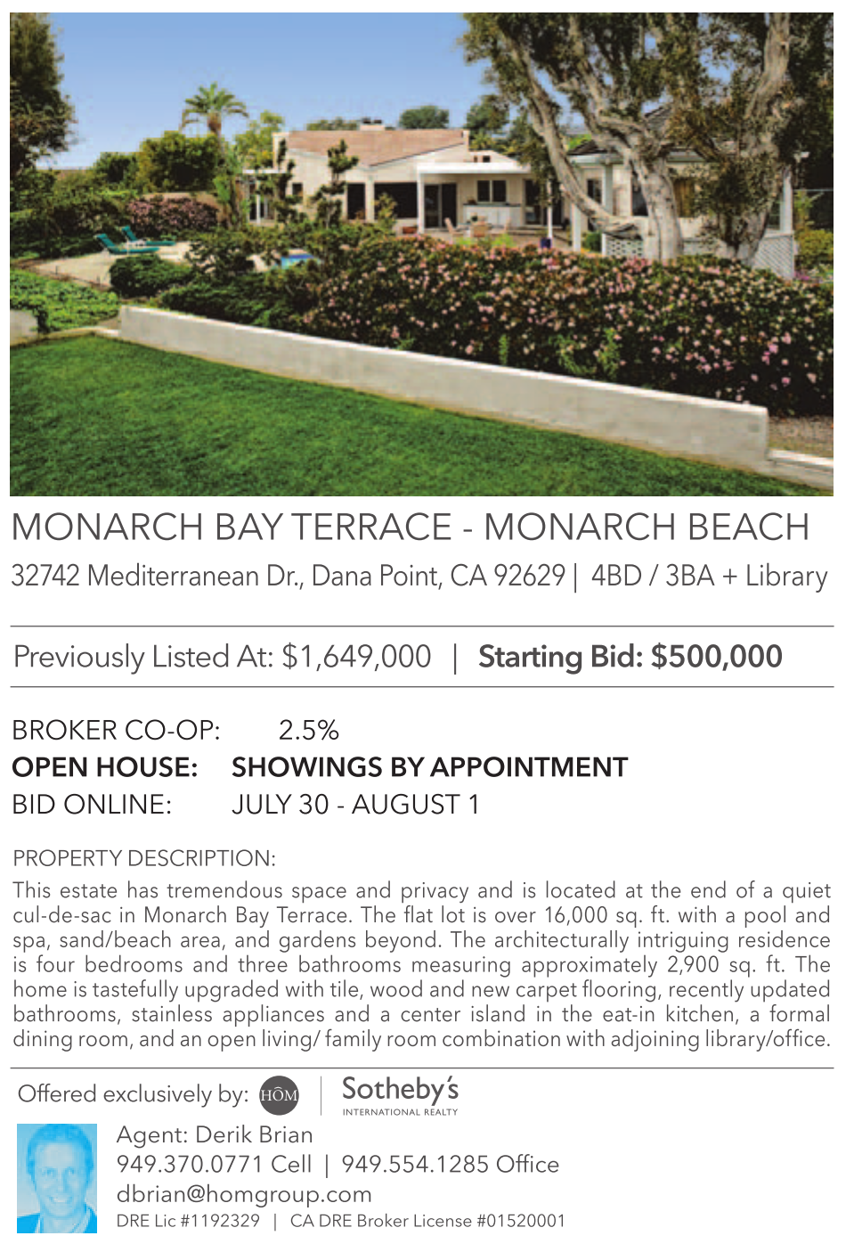 Agent: Derik Brian 949.370.0771 Cell | 949.554.1285 Office dbrian@homgroup.com