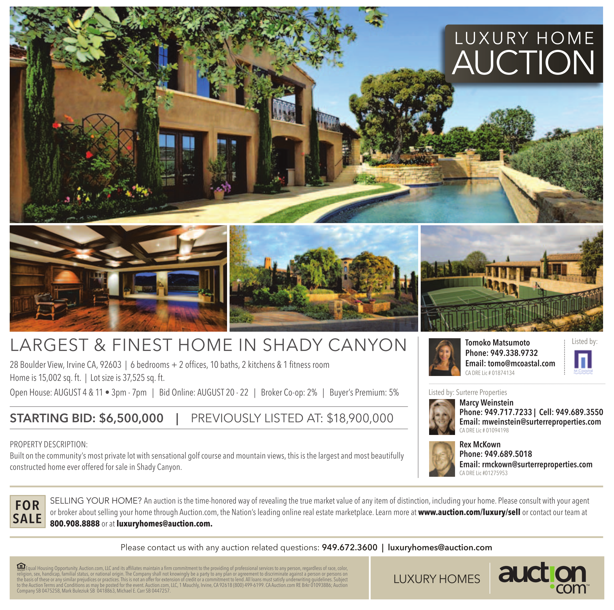 Please contact us with any auction related questions: 949.672.3600 | luxuryhomes@auction.com