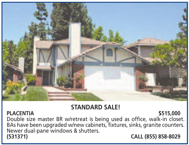 PLACENTIA $515,000 Double size master BR w/retreat is being used as office, walk-in closet. BAs have been upgraded w/new cabinets, fixtures, sinks, granite counters. Newer dual-pane windows & shutters. (531371) CALL (855) 858-8029