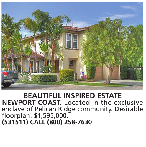 BEAUTIFUL INSPIRED ESTATE NEWPORT COAST. Located in the exclusive enclave of Pelican Ridge community. Desirable floorplan. $1,595,000. (531511) CALL (800) 258-7630