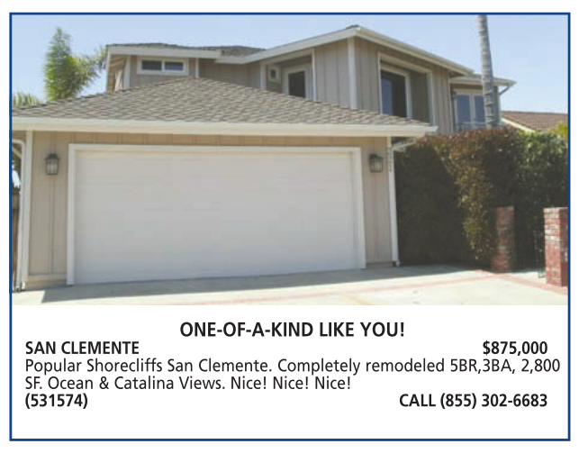 SAN CLEMENTE $875,000 Popular Shorecliffs San Clemente. Completely remodeled 5BR,3BA, 2,800 SF. Ocean & Catalina Views. Nice! Nice! Nice! (531574) CALL (855) 302-6683