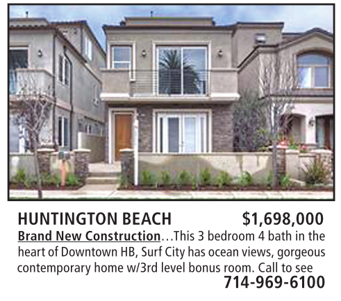 HUNTINGTON BEACH $1,698,000 Brand New Construction…This 3 bedroom 4 bath in the heart of Downtown HB, Surf City has ocean views, gorgeous contemporary home w/3rd level bonus room. Call to see 714-969-6100