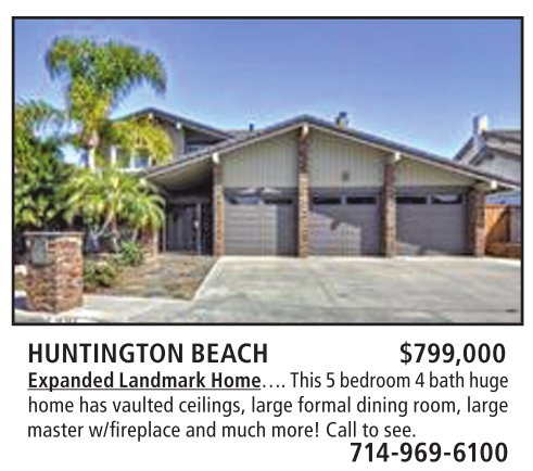 HUNTINGTON BEACH $799,000 Expanded Landmark Home…. This 5 bedroom 4 bath huge home has vaulted ceilings, large formal dining room, large master w/fireplace and much more! Call to see.