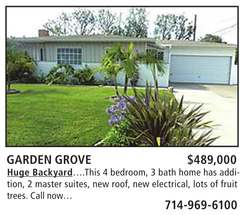 GARDEN GROVE $489,000 Huge Backyard….This 4 bedroom, 3 bath home has addition,