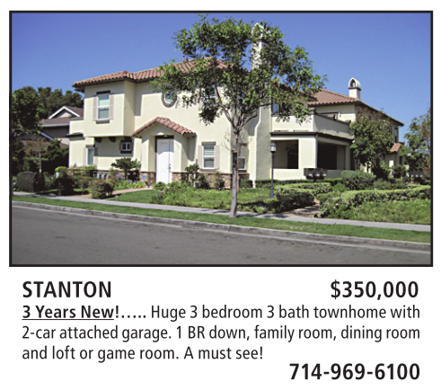 STANTON $350,000 3 Years New!….. Huge 3 bedroom 3 bath townhome with 2-car attached garage. 1 BR down, family room, dining room and loft or game room. A must see!