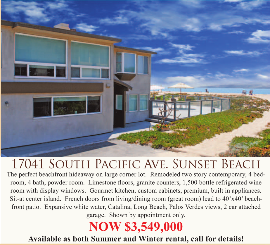 Sit-at center island. French doors from living/dining room (great room) lead to 40’x40’ beachfront patio. Expansive white water, Catalina, Long Beach, Palos Verdes views, 2 car attached