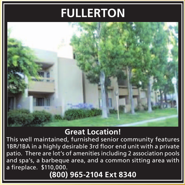 This well maintained, furnished senior community features 1BR/1BA in a highly desirable 3rd floor end unit with a private patio. There are lot’s of amenities including 2 association pools and spa’s, a barbeque area, and a common sitting area with a fireplace. $110,000.