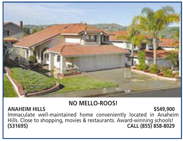 ANAHEIM HILLS $549,900 Immaculate well-maintained home conveniently located in Anaheim Hills. Close to shopping, movies & restaurants. Award-winning schools! (531695) CALL (855) 858-8029