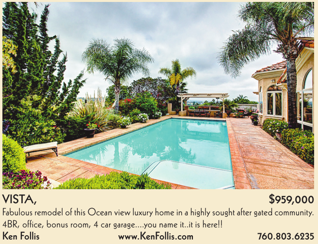 VISTA, $959,000 Fabulous remodel of this Ocean view luxury home in a highly sought after gated community.