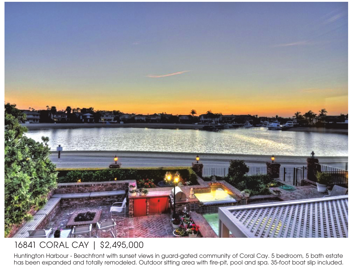 Huntington Harbour - Beachfront with sunset views in guard-gated community of Coral Cay. 5 bedroom, 5 bath estate has been expanded and totally remodeled. Outdoor sitting area with fire-pit, pool and spa. 35-foot boat slip included.