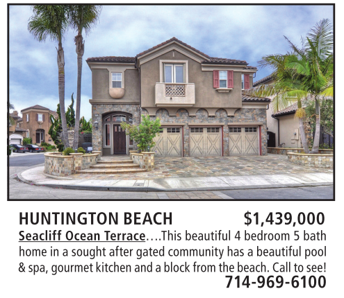 HUNTINGTON BEACH $1,439,000 Seacliff Ocean Terrace….This beautiful 4 bedroom 5 bath home in a sought after gated community has a beautiful pool & spa, gourmet kitchen and a block from the beach. Call to see!